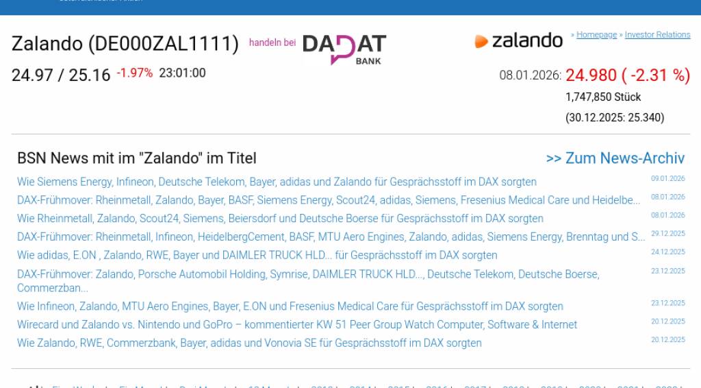 Zalando am 8.1. -2,31%, Volumen 123% normaler Tage