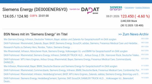 Siemens Energy am 8.1. -4,60%, Volumen 112% normaler Tage