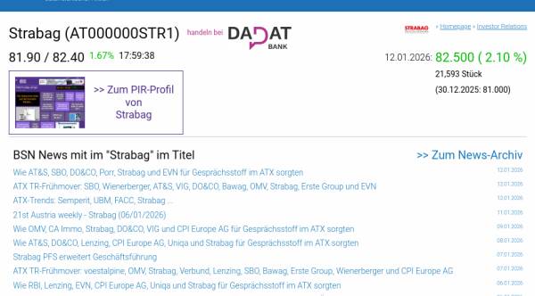 Strabag am 12.1. 2,10%, Volumen 61% normaler Tage