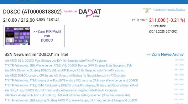 DO&CO am 12.1. -3,21%, Volumen 154% normaler Tage