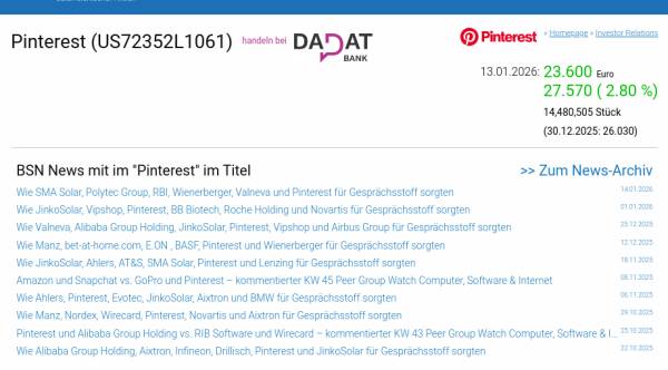 Pinterest am 13.1. 2,80%, Volumen 122% normaler Tage