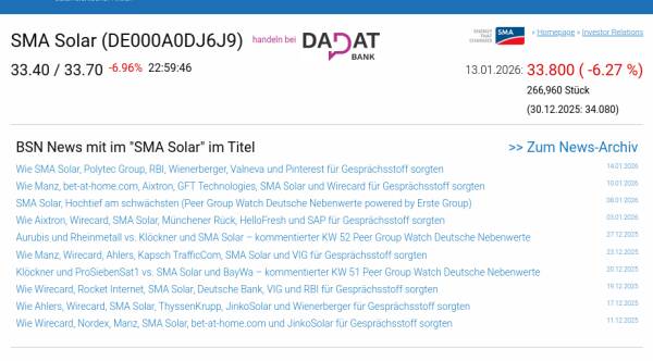SMA Solar am 13.1. -6,27%, Volumen 224% normaler Tage