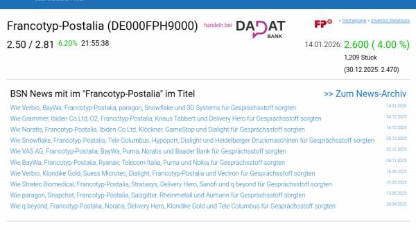 Francotyp-Postalia am 14.1. 4,00%, Volumen 89% normaler Tage