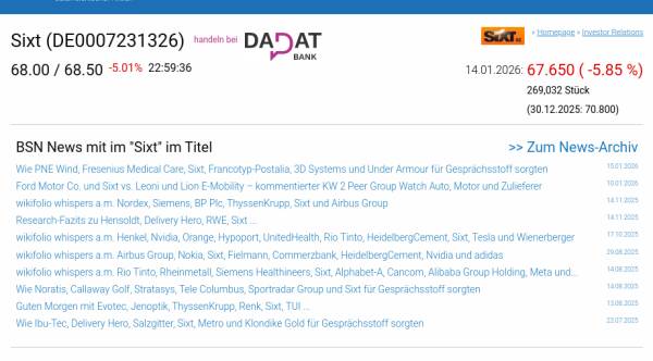 Sixt am 14.1. -5,85%, Volumen 443% normaler Tage