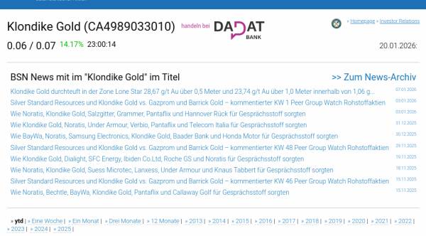 Klondike Gold am 20.1. 16,67%, Volumen 100% normaler Tage