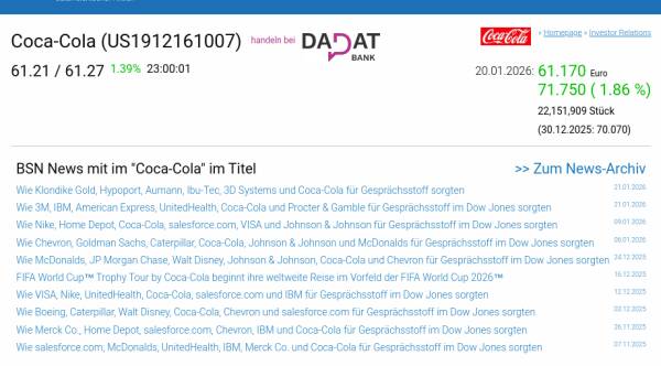 Coca-Cola am 20.1. 1,86%, Volumen 122% normaler Tage
