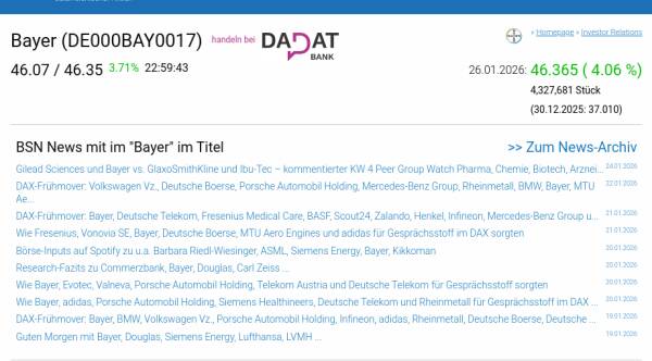 Bayer am 26.1. 4,06%, Volumen 102% normaler Tage
