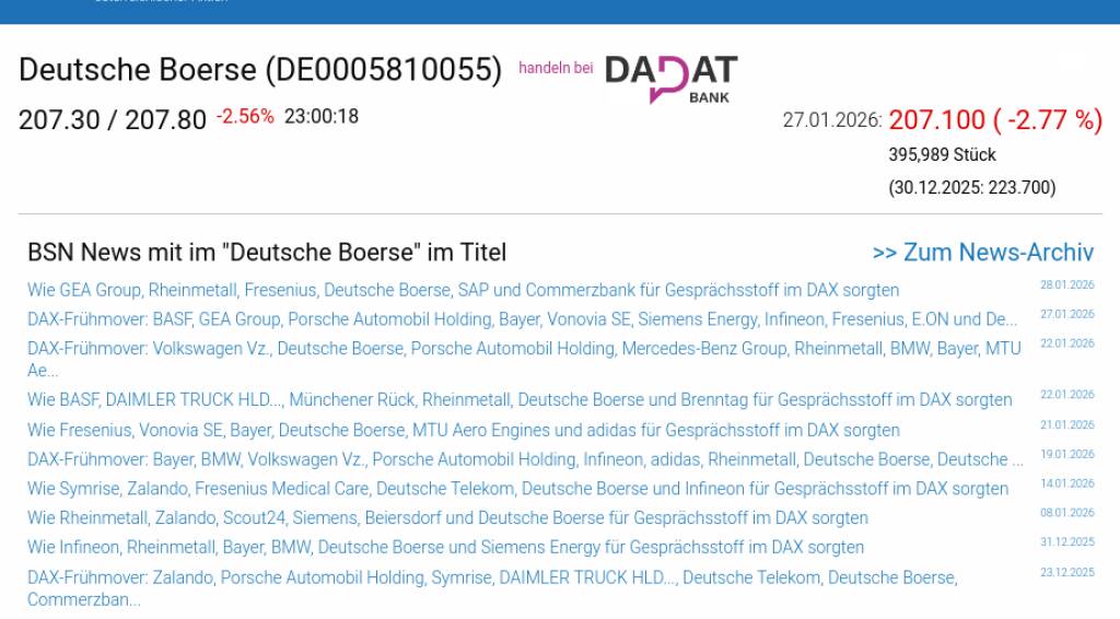 Deutsche Boerse am 27.1. -2,77%, Volumen 79% normaler Tage