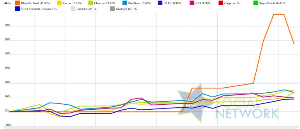 Klondike Gold-Aktie am besten: 13,56% Plus. Dahinter