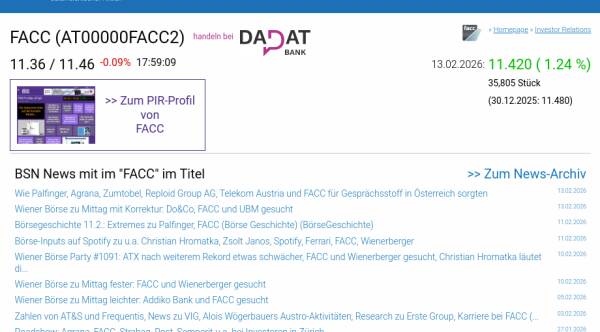 FACC am 13.2. 1,24%, Volumen 91% normaler Tage