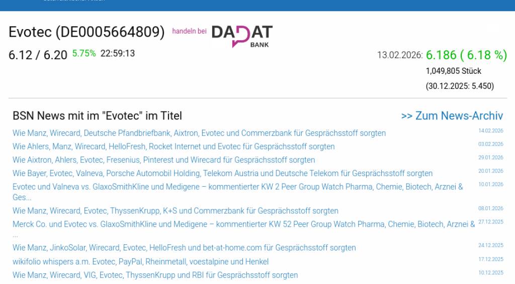 Evotec am 13.2. 6,18%, Volumen 140% normaler Tage