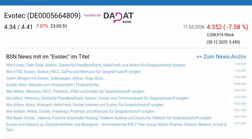 Evotec am 11.3. -7,58%, Volumen 263% normaler Tage