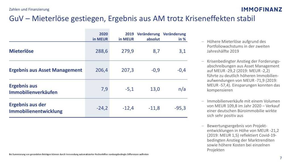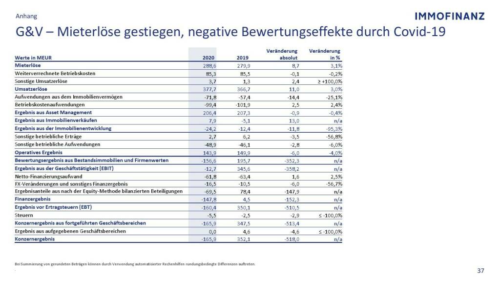 Immofinanz - G&V - Mieterlöse gestiegen, negative Bewertungseffekte durch Covid-19