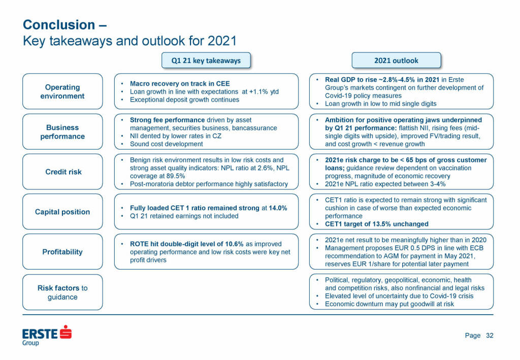 „ Erste Group - Key takeaways and outlook “