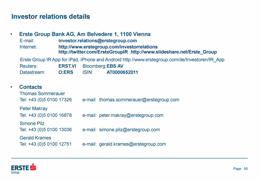 „ Erste Group - Investor relations details “