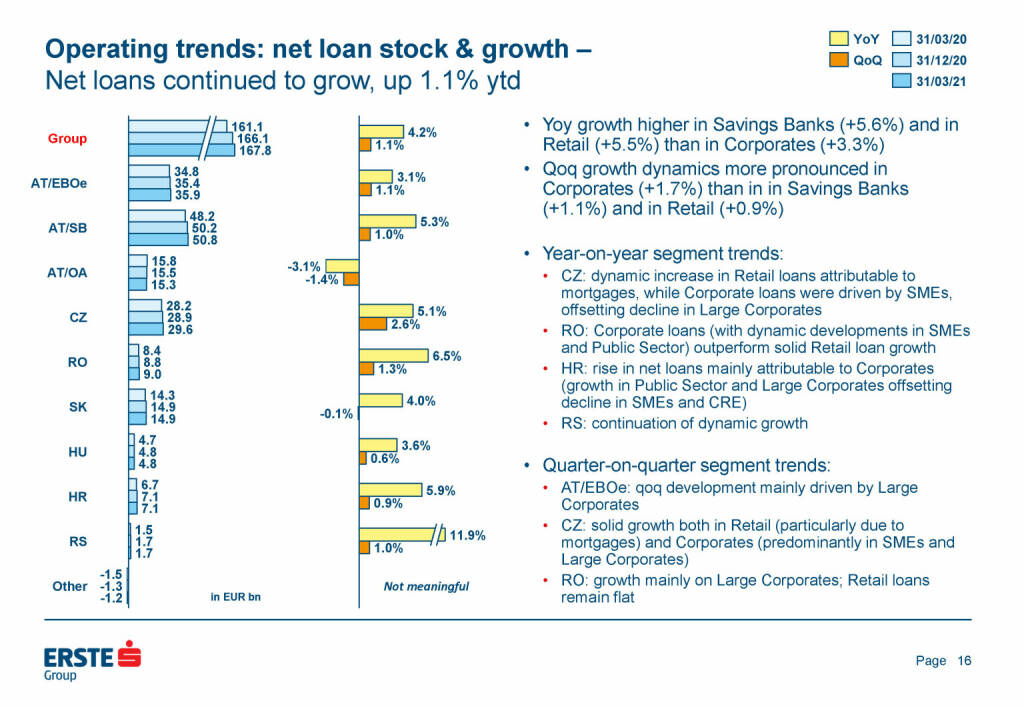 „ Erste Group - Operating trends: net loan stock & growth “