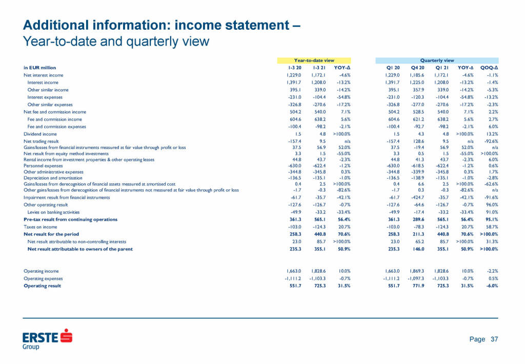 „ Erste Group - Additional information: income statement “