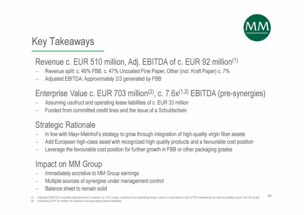 „ Mayr-Melnhof - Acquisition of Kotkamills & IP Kwidzyn “