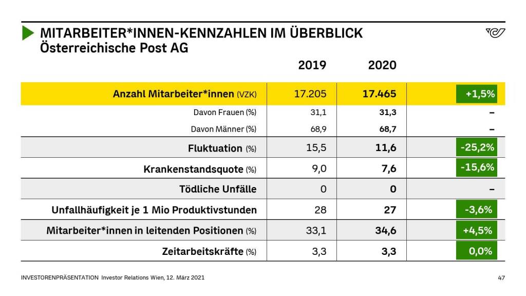 „ Österreichische Post - MITARBEITER*INNEN-KENNZAHLEN IM ÜBERBLICK “