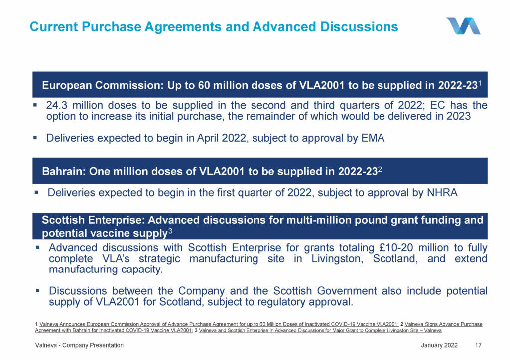 „ Valneva - Current Purchase Agreements and Advanced Discussions “