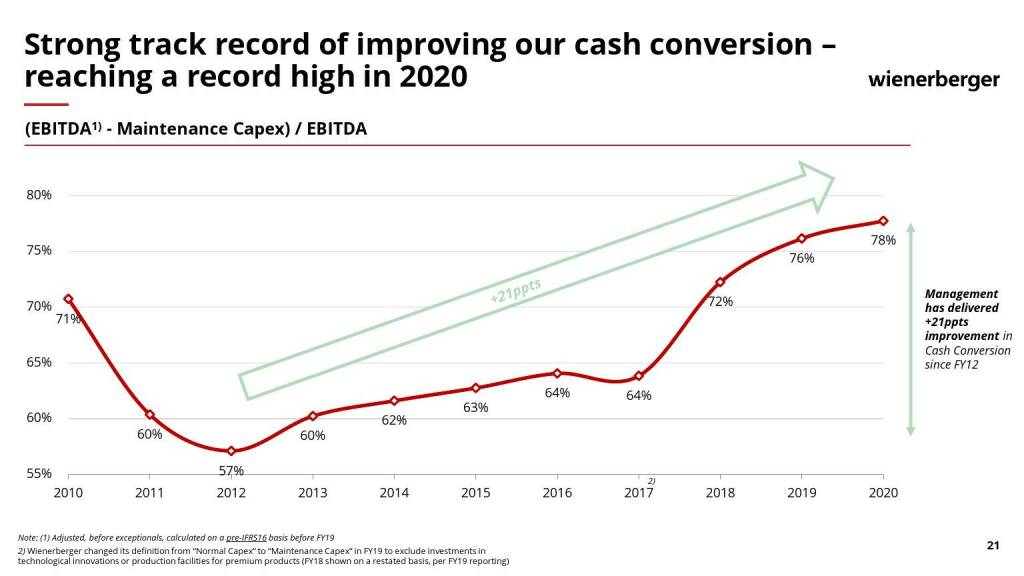 „ Wienerberger - Strong track record of improving our cash conversion “