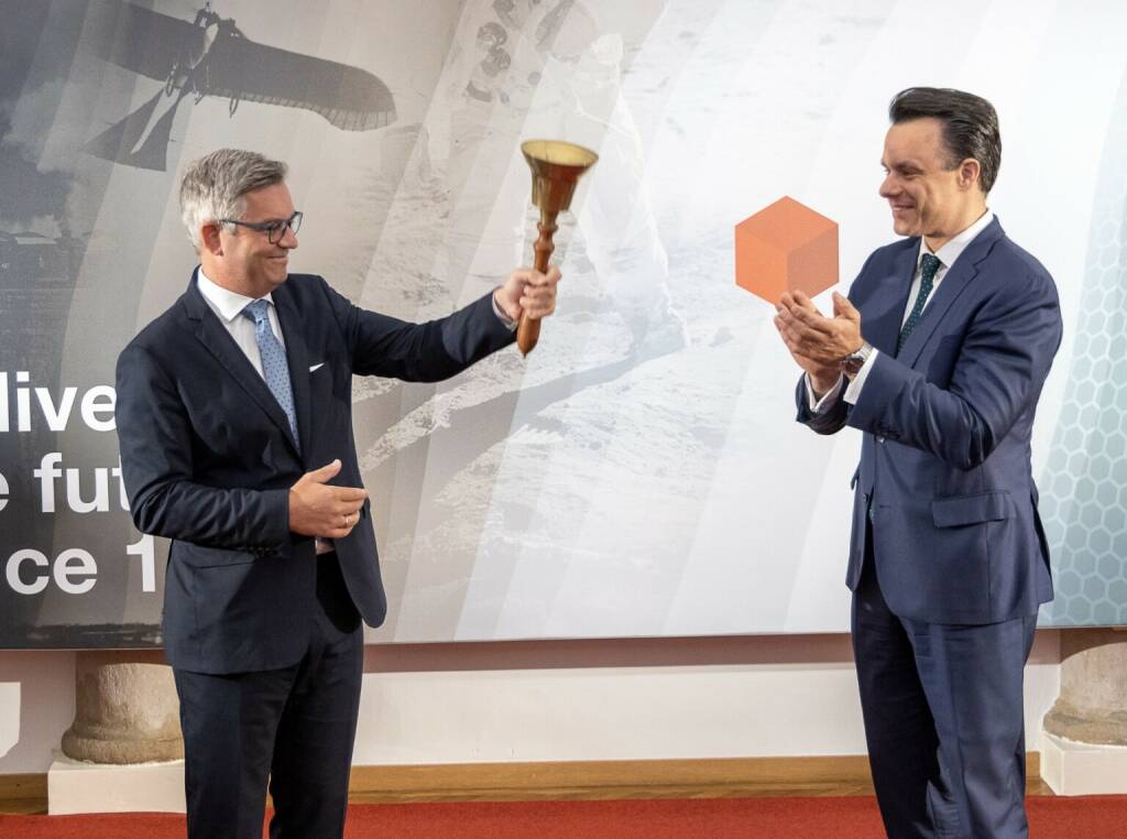 2.9.: Ferdinand Habsburg-Lothringen läutet die Opening Bell zum (exakten) 250er der Wiener Börse. Die Chefs der Wiener Börse, Andrea Herrmann und Christoph Boschan, applaudieren http://www.wienerborse.at http://www.boersegeschichte.at
