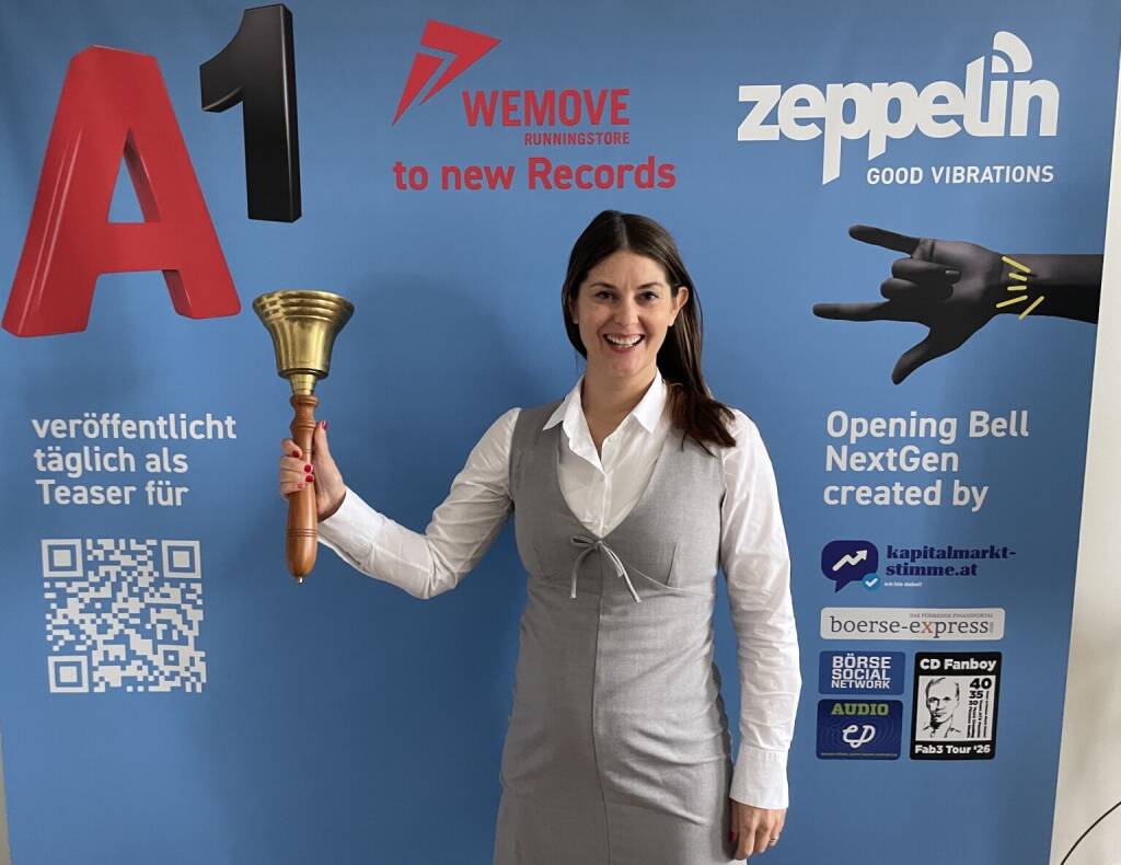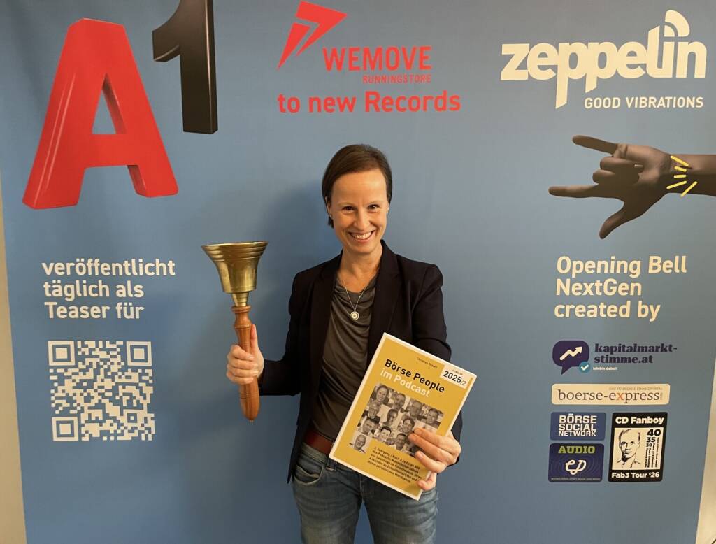 Katharina Hader läutet die Opening Bell für Dienstag. Gemeinsam mit Thomas Freisinger ist sie auf dem Cover der Jahresendnummer 2025 des Börse Social Magazine. http://www.boerse-social.com/magazine