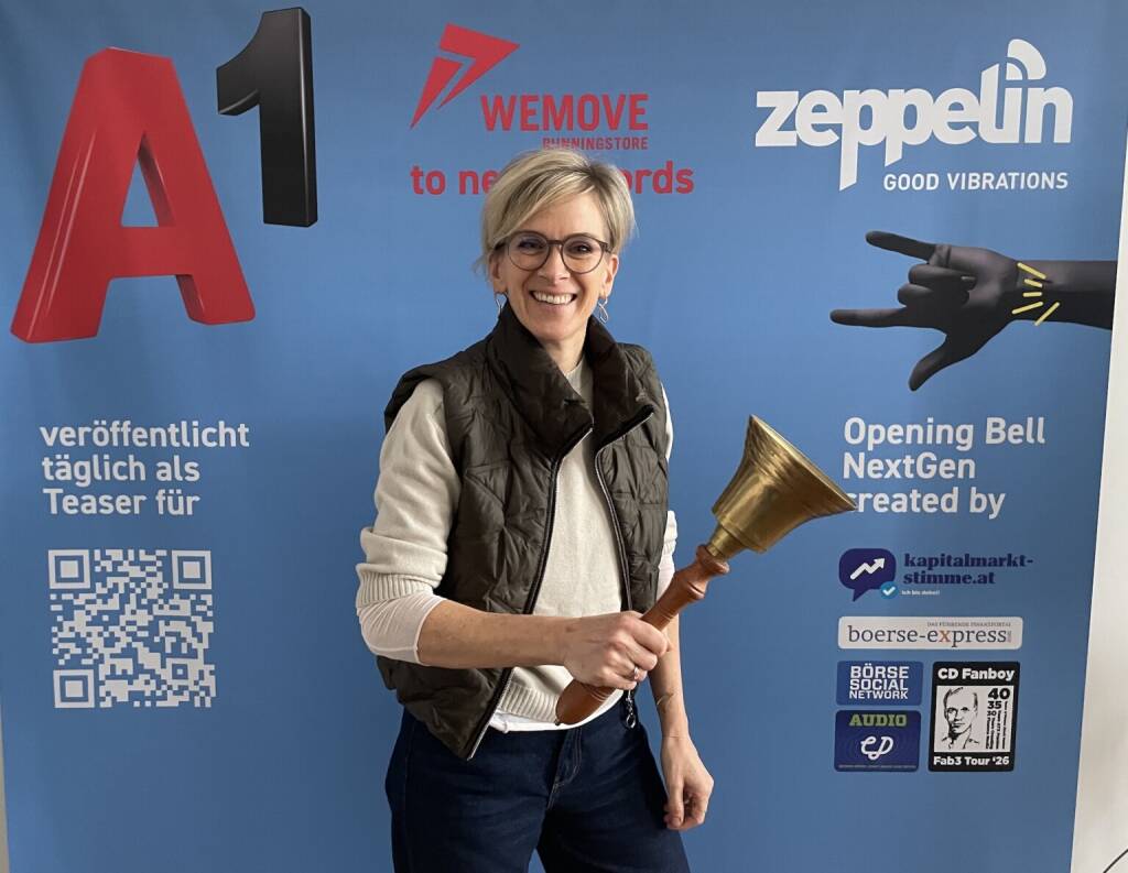 Barbara Riedl-Wiesinger läutet die Opening Bell für Donnerstag. Sie nennt sich selbst Online-Dinosaurier, agierte als Topmanagerin im Recruiting-Bereich und es ist auch ein Spoiler-Läuten für die kommende Woche, weil auch viele Audio-Facetten mitschwingen und es in der Börsepeople-Serie next week einen Schwerpunkt gibt.