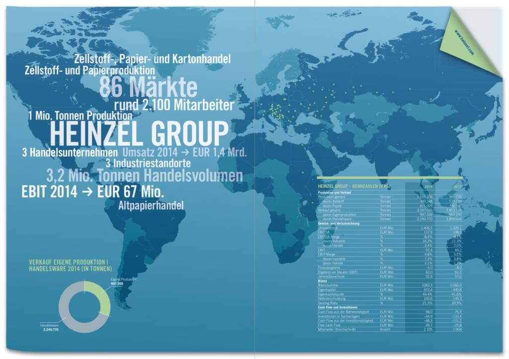 "Zellstoff, Papier und Kartonhandel, Zellstoff und Papierproduktion, 86 Märkte, rund 2.100 Mitarbeiter, 1 Mio. Tonnen Produktion"
