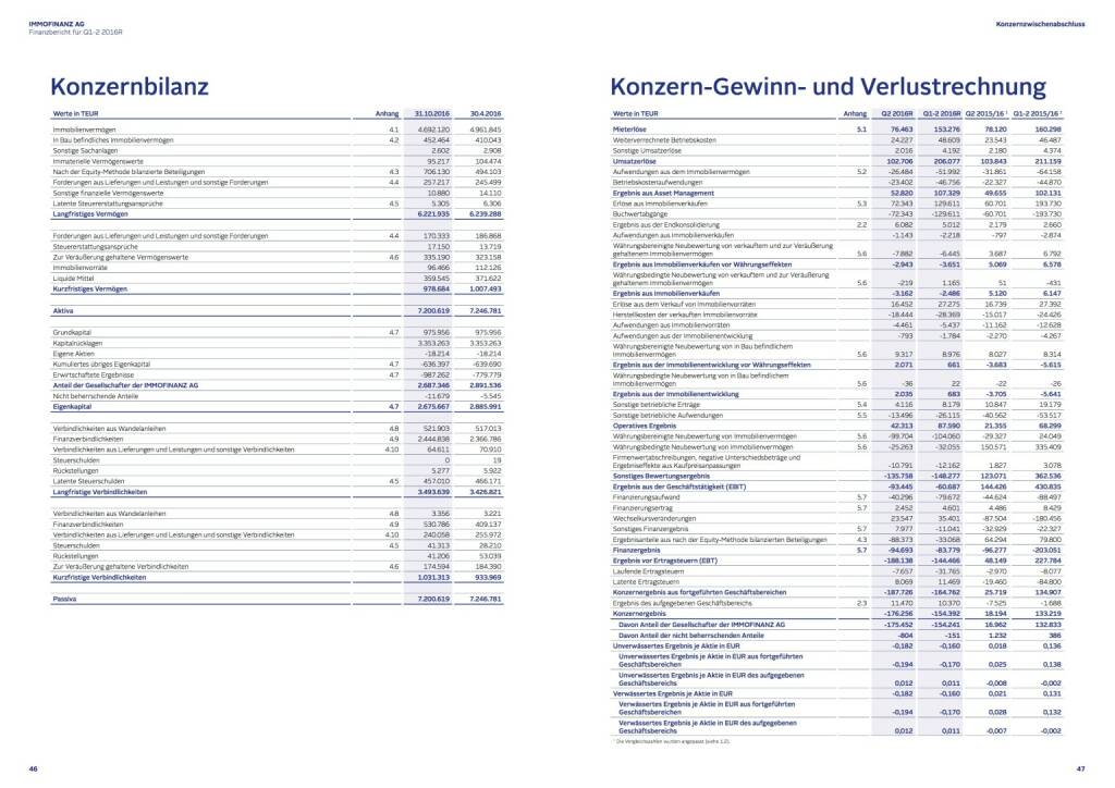 Sample page 5 for "Immofinanz Finanzbericht Q1-2 2016 - Konzernbilanz"