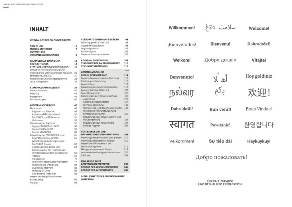 Sample page 1 for "Palfinger Geschäftsbericht 2015 - Inhalt"