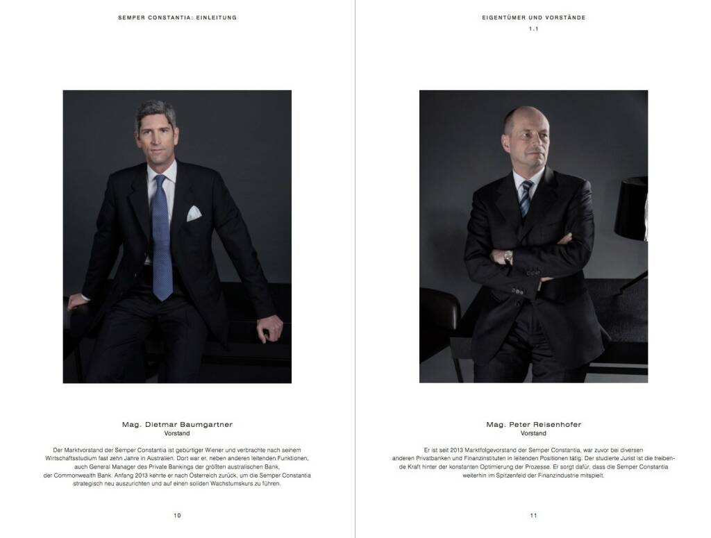Sample page 3 for "Semper Constantia Geschäftsbericht 2014 - Mag. Dietmar Baumgartner, Vorstand / Mag. Peter Reisenhofer, Vorstand"