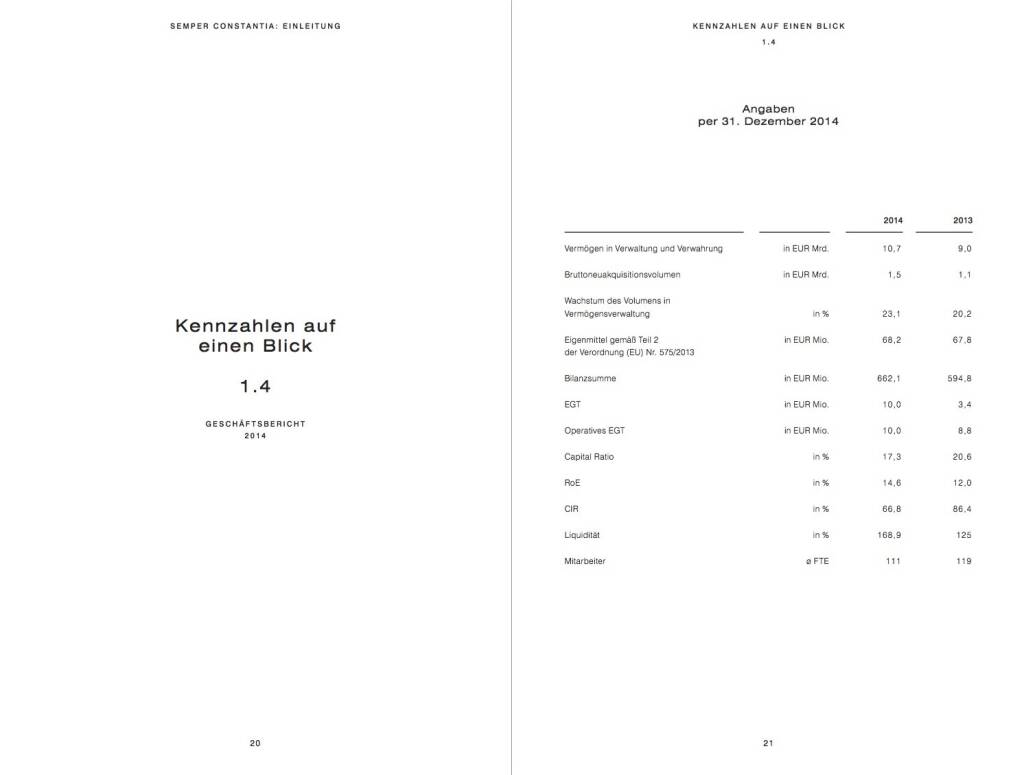 Sample page 4 for "Semper Constantia Geschäftsbericht 2014 - Kennzahlen auf einen Blick"