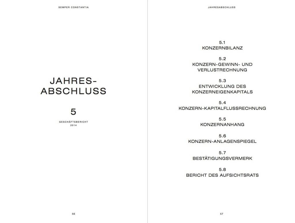 Sample page 1 for "Semper Constantia Geschäftsbericht 2014 - Inhalt"