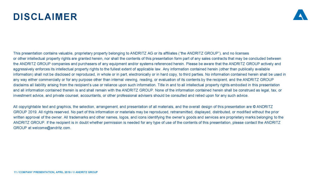 „ Andritz - Disclaimer “
