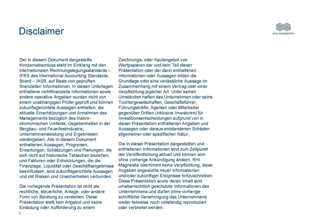 „ RHI Magnesita - Pro-forma-Kennzahlen “