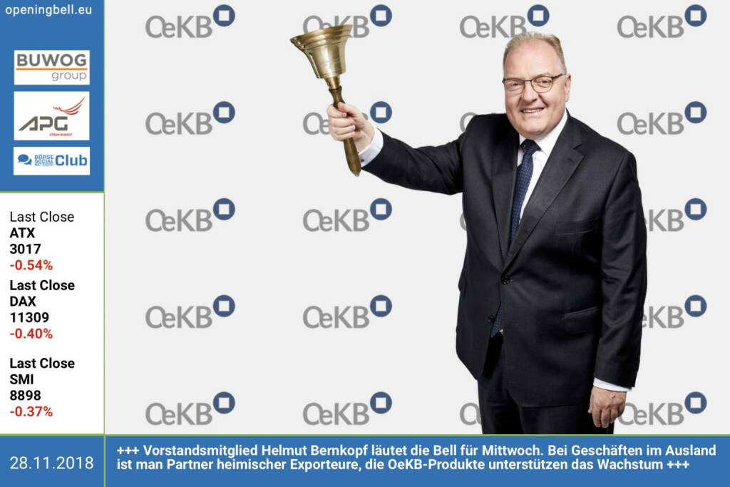 28.11.: Vorstandsmitglied Helmut Bernkopf läutet die Opening Bell für Mittwoch. Die OeKB unterstützt mit ihren Produkten den Wachstumskurs österreichischer Unternehmen und ist bei Geschäften im Ausland eine verlässliche Partnerin heimischer Exporteure http://www.oekb.at https://www.facebook.com/groups/GeldanlageNetwork