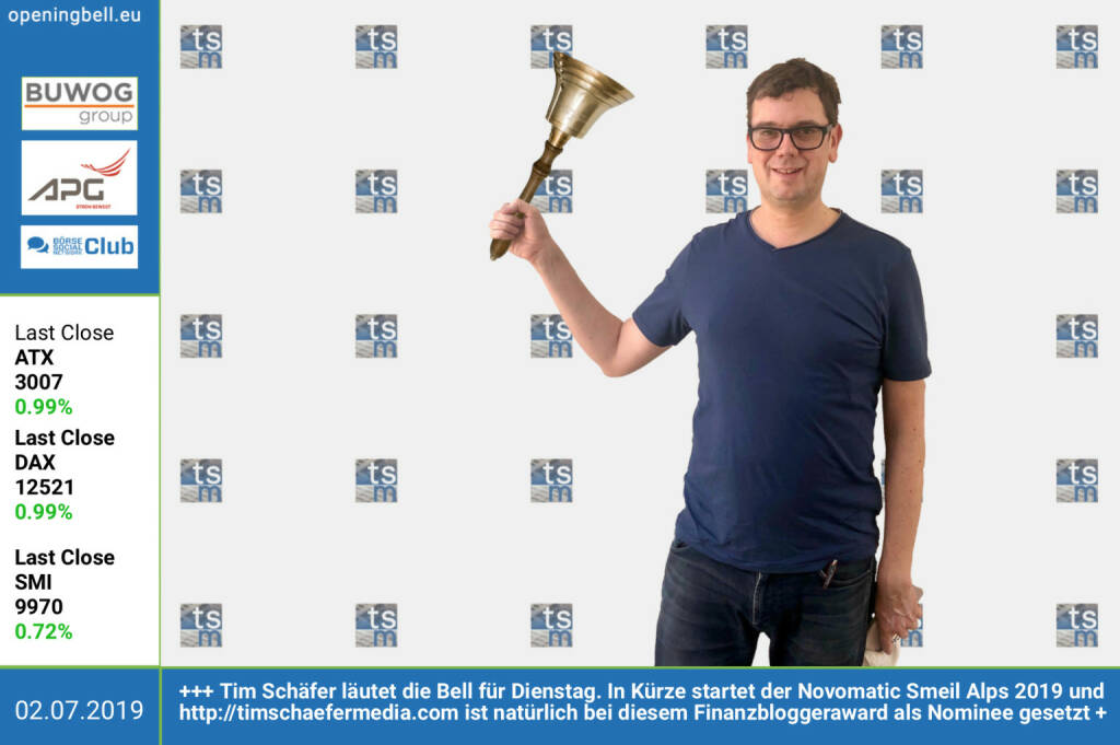 2.1.: Georg Zinner läutet die Opening Bell für Mittwoch. Möge der Geschäftsführer der OeKB CSD im Jahr 2019 viele neue ISINs an Emittenten vergeben, zb rund um den neuen direct market plus. Im Magazine #23 (seit heute unter https://boerse-social.com/pdf/magazines/bsm_23 als Digital Paper live) ist Zinner im Interview zum global market http://www.oekb.at https://www.facebook.com/groups/GeldanlageNetwork