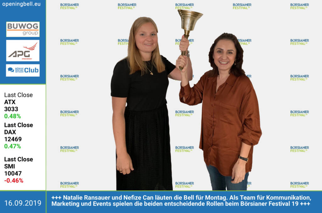 4.12.: Anna Grausgruber läutet die Opening Bell für Mittwoch. Anfang 2020 übernimmt die 30jährige die IR-Agenden bei Wienerberger von Klaus Ofner, der als Head of Corporate Development neue Aufgaben im Konzern wahrnehmen wird http://www.wienerberger.com