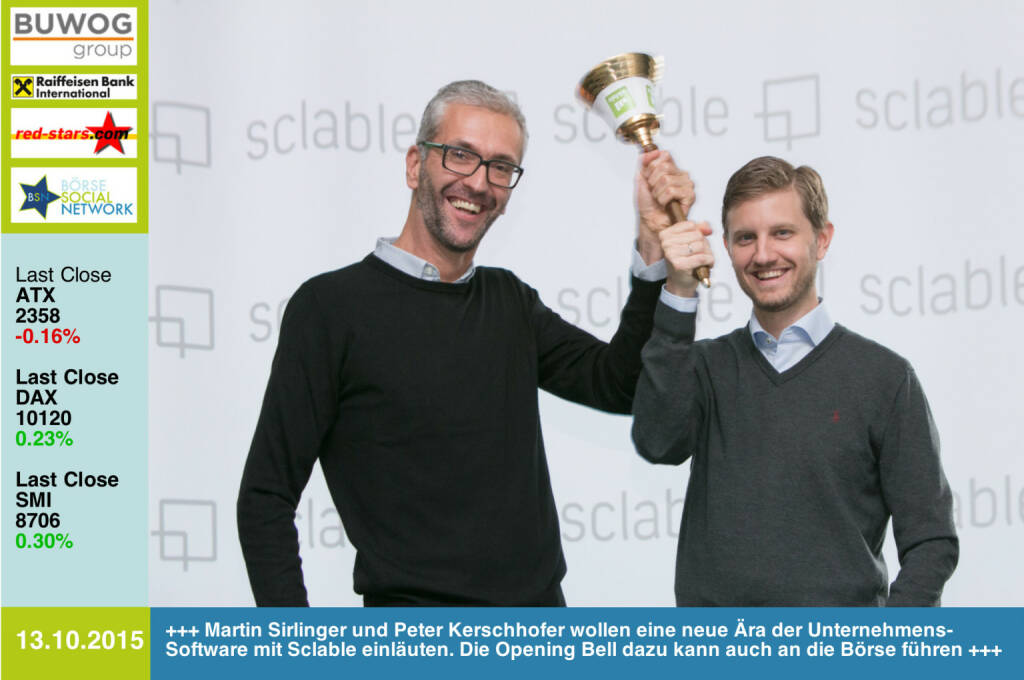 #openingbell am 13.10. für Sclable: Martin Sirlinger und Peter Kerschhofer wollen eine neue Ära der Unternehmens-Software einläuten. Die Opening Bell dazu kann auch an die Börse führen http://www.openingbell.eu