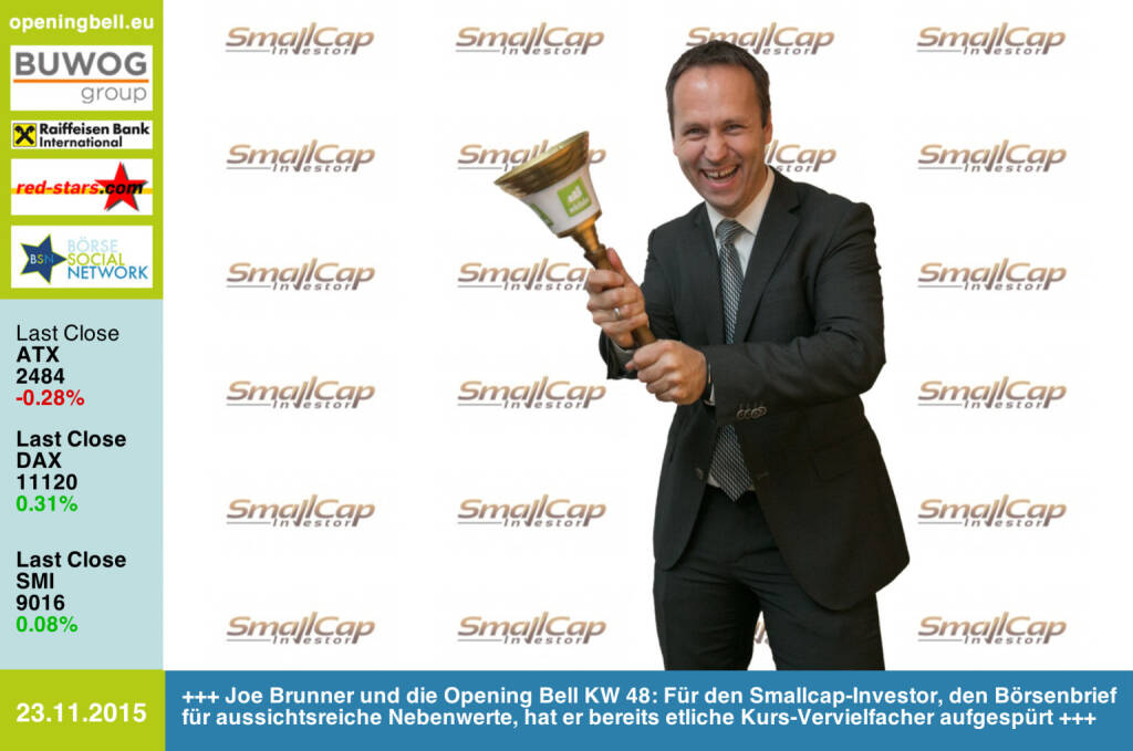 #openingbell am 23.11.:Joe Brunner und die Opening Bell KW 48: Für den Smallcap-Investor, den Börsenbrief für aussichtsreiche Nebenwerte, hat er bereits etliche Kurs-Vervielfacher aufgespürt http://www.smallcapinvestor.de http://www.openingbell.eu