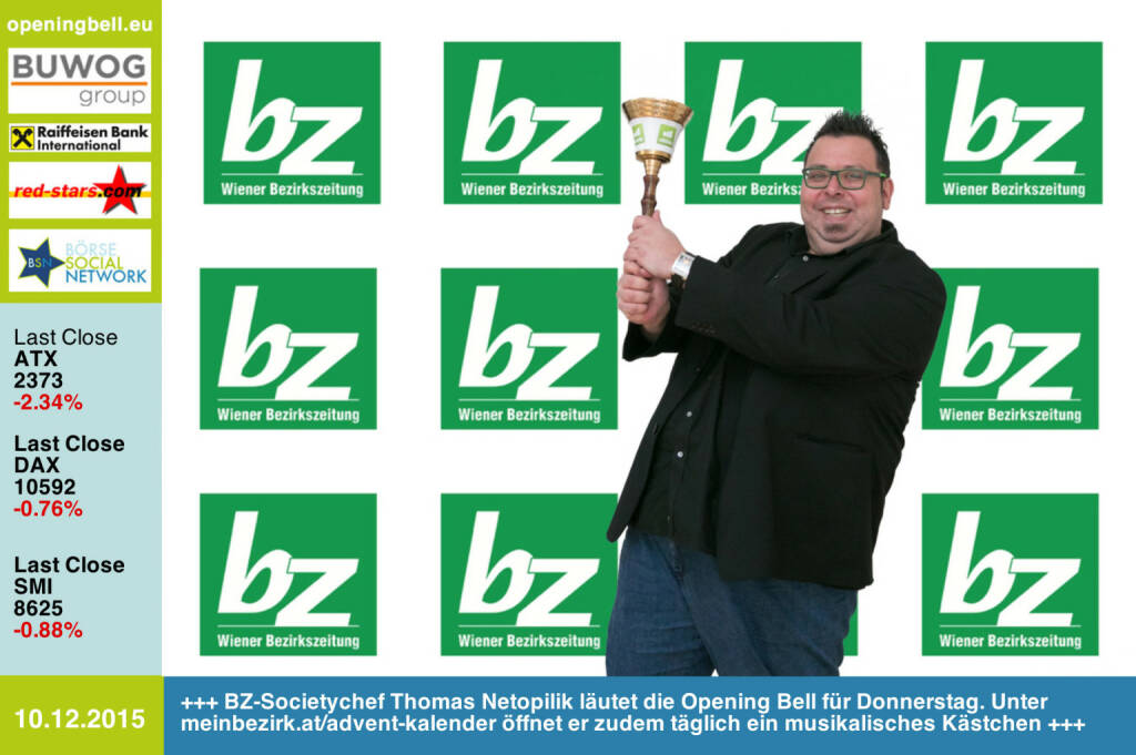 #openingbell am 10.12: BZ-Societychef Thomas Netopilik läutet die Opening Bell für Donnerstag. Unter http://www.meinbezirk.at/advent-kalender öffnet er zudem täglich ein musikalisches Kästchen http://www.openingbell.eu