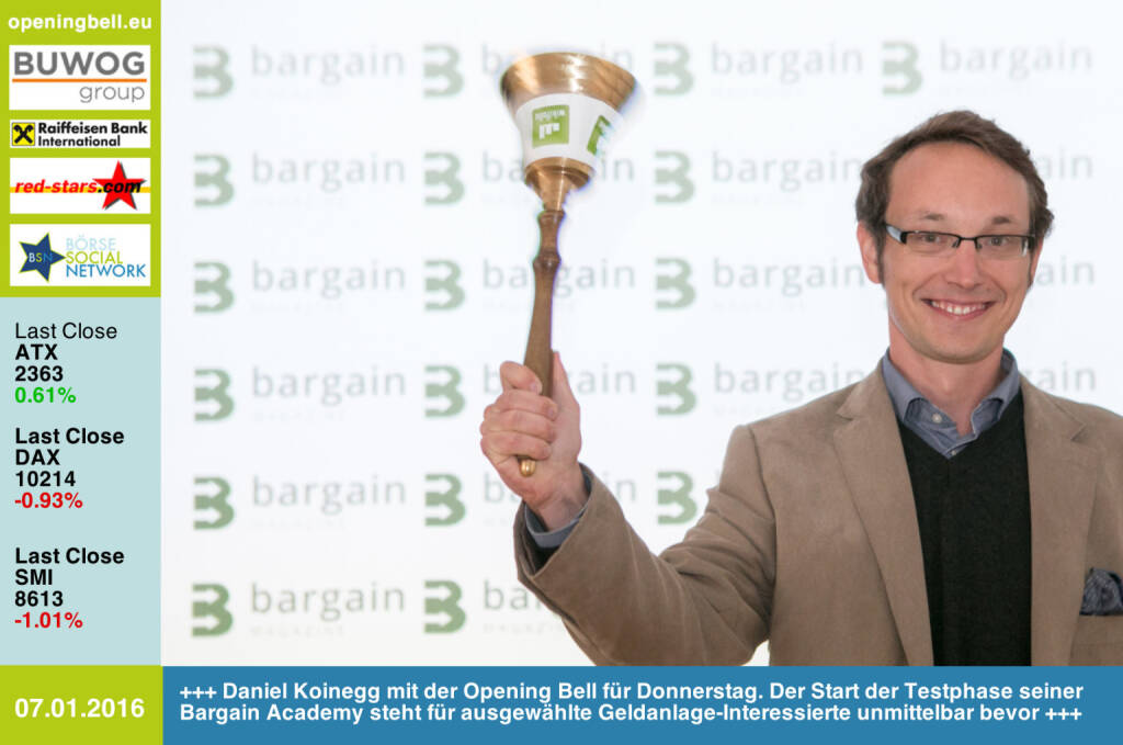 #openingbell am 7.1.: Daniel Koinegg mit der Opening Bell für Donnerstag. Der Start der Testphase seiner Bargain Academy steht für ausgewählte Geldanlage-Interessierte unmittelbar bevor http://bargain-academy.com/ http://www.openingbell.eu