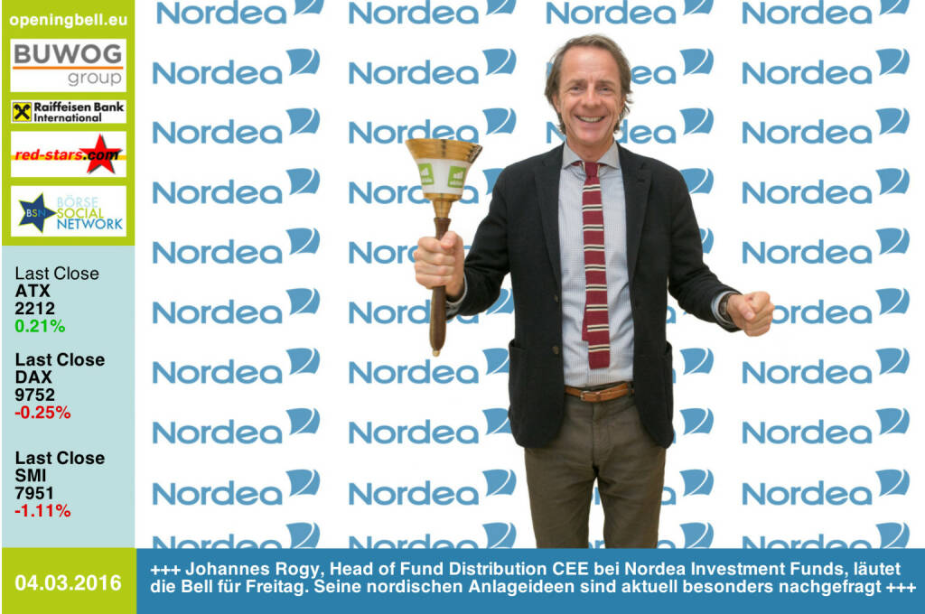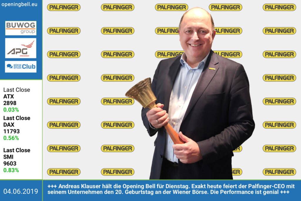 4.6..: Andreas Klauser läutet die die Opening Bell für Dienstag. Exakt heute feiert der Palfinger-CEO mit seinem Unternehmen den 20. Geburtstag an der Wiener Börse. Die Performance ist genial http://www.palfinger.com https://www.facebook.com/groups/GeldanlageNetwork