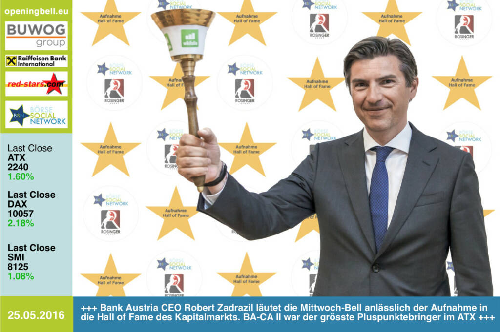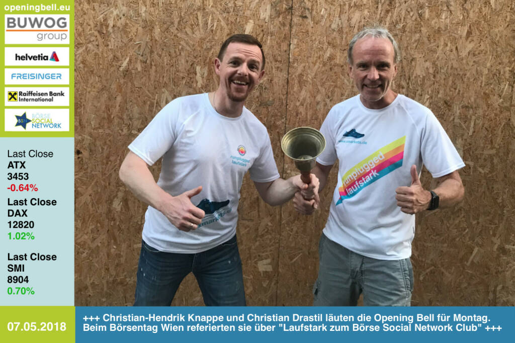 9.5.: Sebastian Leben läutet die Opening Bell für Donnerstag. Der Radiojournalist wird für uns heute beim Zertifikate Award Austria etliche Interviews führen. Zusammenfassung im nächsten http://www.boerse-social.com/magazine bzw. http://www.boersenradio.at. Und: 20 Jahren Börsen Radio Network hat ebenfalls grossen Bezug zu unserem eigenen 20er. https://www.facebook.com/groups/GeldanlageNetwork http://www.zfa.at
