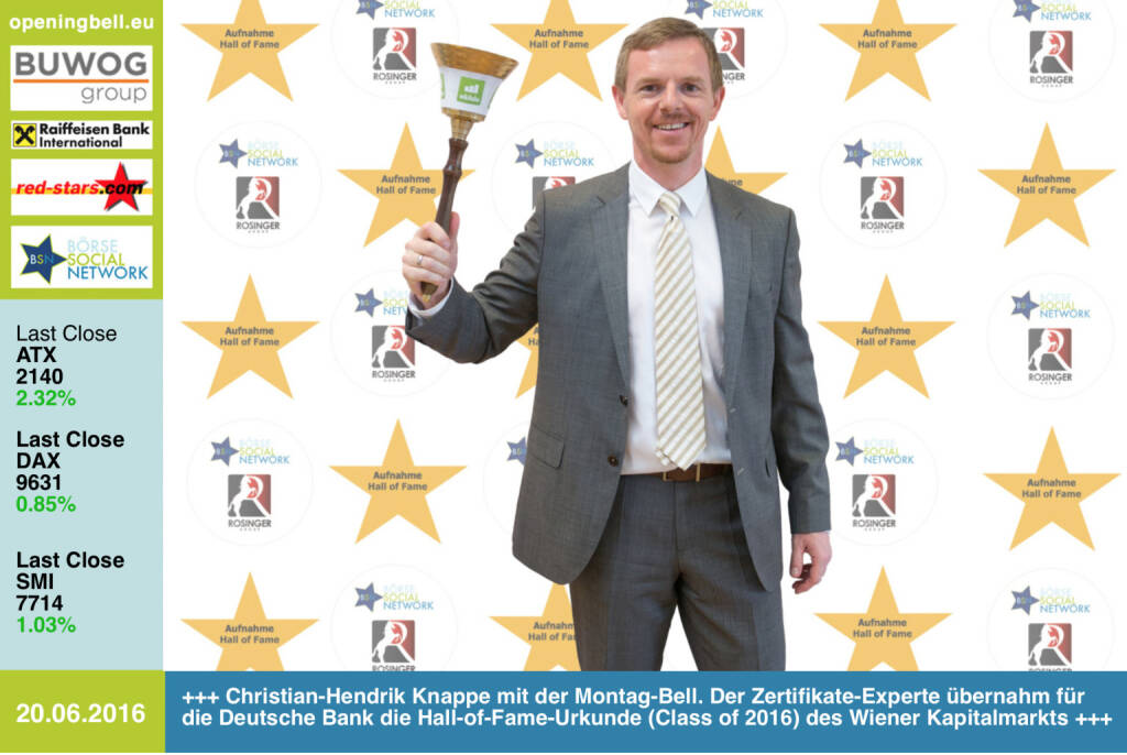 10.5. Henning Bergmann und Lars Brandau läuten die Opening Bell für Freitag. Gestern nach dem Zertifikate Award Austria wurde der DDV-Spitze die Hall of Fame Urkunde übergeben http://www.boerse-social.com/hall-of-fame https://www.derivateverband.de/ https://www.facebook.com/groups/GeldanlageNetwork