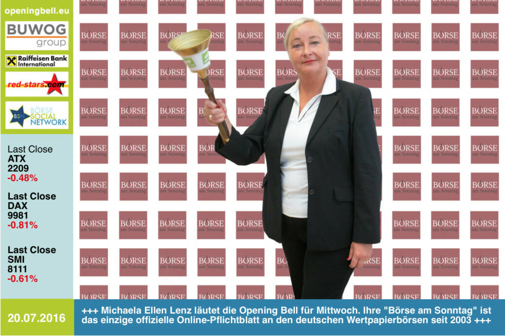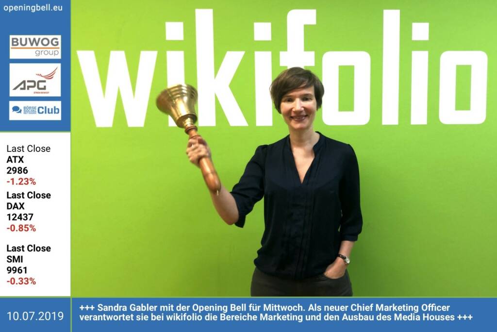 10.7.: Sandra Gabler mit der Opening Bell für Mittwoch. Als neuer Chief Marketing Officer verantwortet sie bei wikifolio die Bereiche Marketing und den Ausbau des Media Houses http://wikifolio.com https://www.facebook.com/groups/GeldanlageNetwork