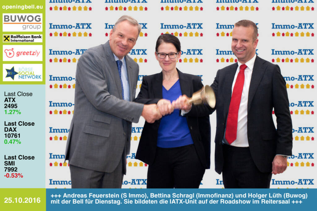 #openingbell am 6.10.: Daniel Riedl, CEO Buwog Group, läutet 15 Monate nach der Erstnotiz-Glocke in Frankfurt nun auch die BSN-Opening Bell ein. http://www.openingbell.eu
