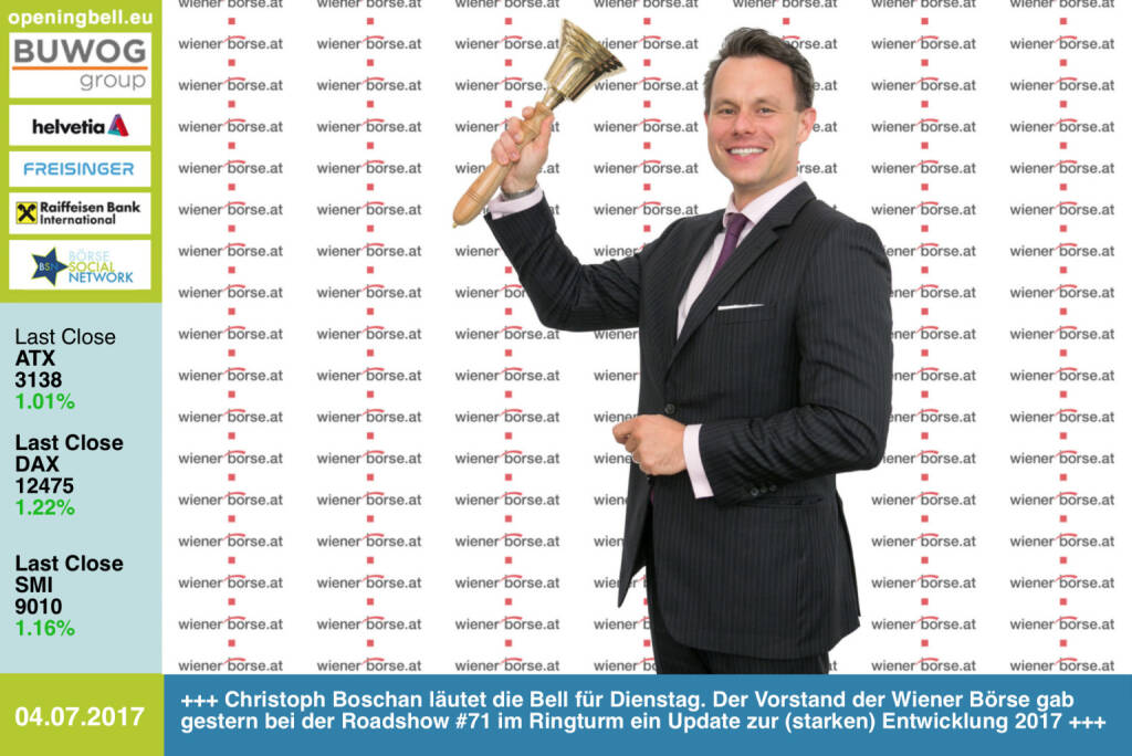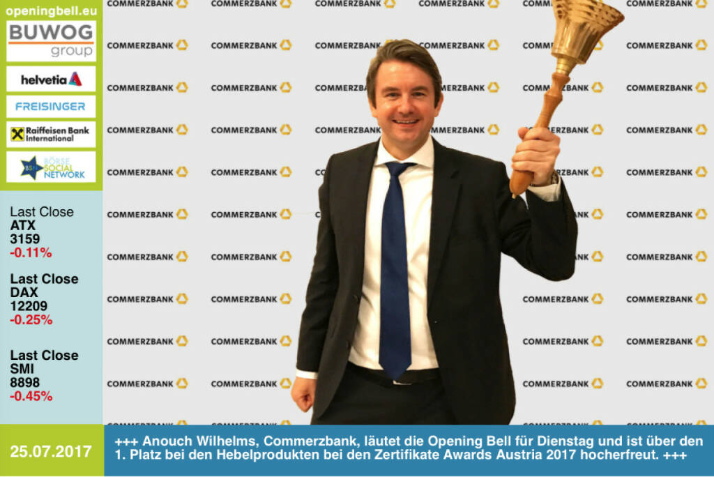 11.7.: Martin Hinteregger mit der Opening Bell für Donnerstag. Seine Company Lions Capital Partners ist direct market plus Partner und berät Firmen beim Listing an der Wiener Börse http://lionscapitalpartners.com https://www.facebook.com/groups/GeldanlageNetwork