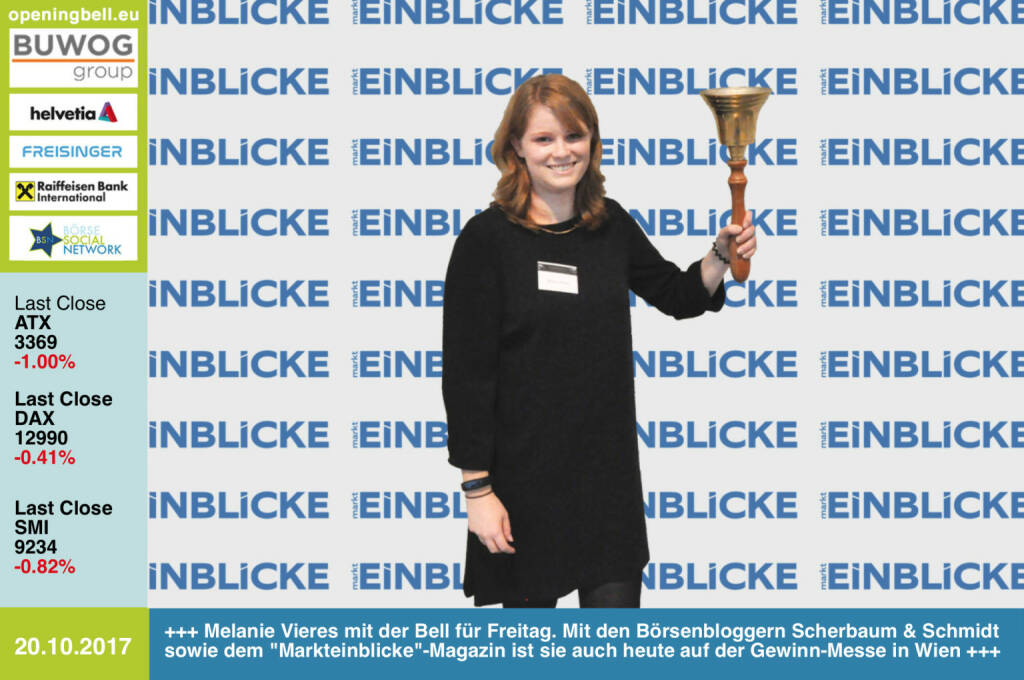 #openingbell am 20.10.: Robert Gillinger, GF Börse Express, läutet die Opening Bell für Dienstag. Leuten, die über die Börse diskutieren wollen, empfiehlt er das BE-Board - via Website http://www.boerse-express.com/postings oder App http://www.openingbell.eu
